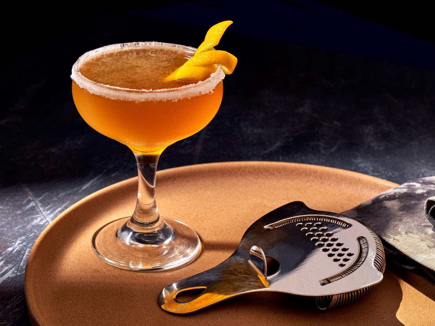 그렇게 풍요로운 이야기를 표현하기 위해, 제안드리는 대표적인 칵테일 중 하나는 "Sidecar"입니다. Sidecar는 1920년대에 탄생한 고전적인 칵테일로, 브랜디, 시트러스 맛의 컨트로와, 달콤한 설탕 시럽을 혼합하여 만들어집니다. 이 칵테일은 고급스러운 분위기와 세련된 맛을 갖추고 있으며, 사라 우드로의 이중적인 성격과 사랑에 빠지는 모습을 상징적으로 나타낼 수 있습니다.